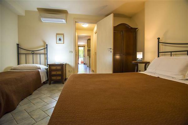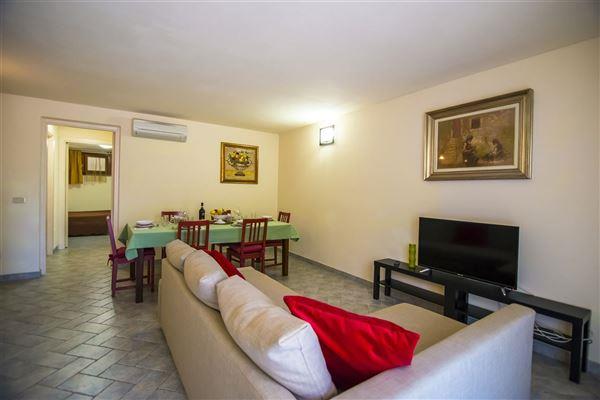 Appartamento su 2 Livelli, Piano Terra e Seminterrato inserito in un complesso immobiliare di 64 appartamenti, realizzato tra il 2002 ed il 2005 è ubicato nella parte di testa del Blocco C così da avere 3 lati di affaccio. All’appartamento con ingresso indipendente, si accede da una veranda di circa 12 mq che sia affaccia su un piccolo giardino privato. Il Piano Terra di circa 55 mq è composto da soggiorno pranzo e angolo cottura, disimpegno, 2 camere da letto di cui una matrimoniale ed una doppia oltre ad un bagno. La camera doppia ha accesso ad un piccolo balcone di circa 4 mq. Al Piano Seminterrato di circa 60 mq si accede attraverso una scala interna oppure direttamente dalla parte esterna del Blocco C in modo tale da rendere indipendenti i 2 Piani. All’interno del Piano Seminterrato, troviamo la zona “taverna” del piano superiore completa di angolo cottura oltre ad un bagno e un vano adibito a lavanderia.